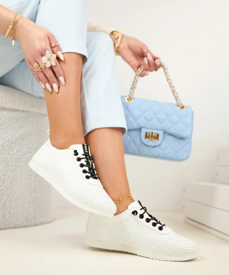 • Białe Ażurowe Lekkie Tenisówki Zinnia