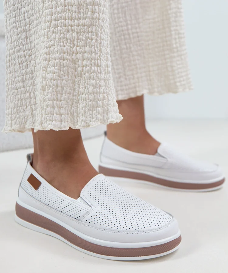 Białe Ażurowe Skórzane Wsuwane Półbuty Cambell