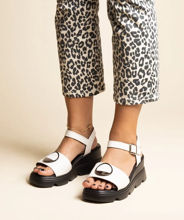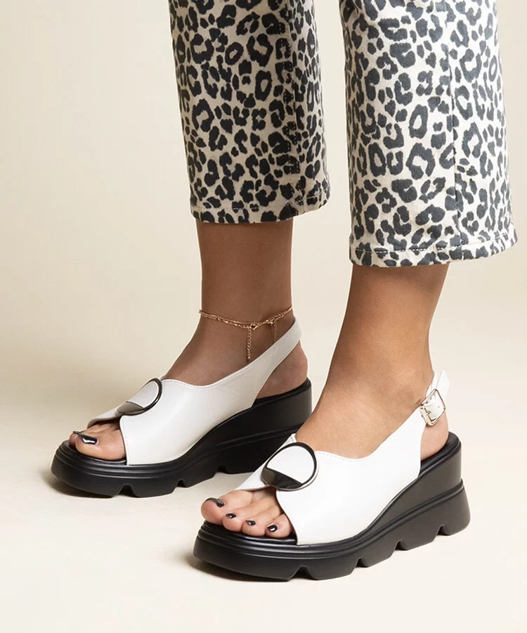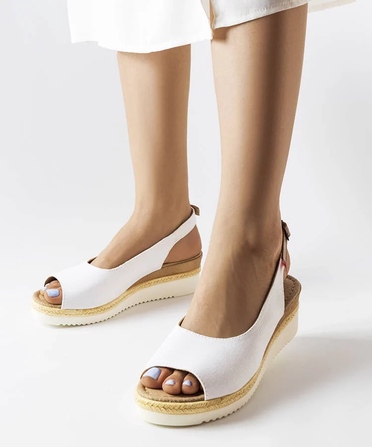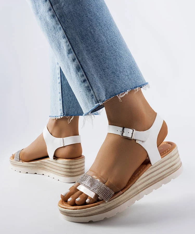 • Białe sandały na koturnie z eko skóry Maddison