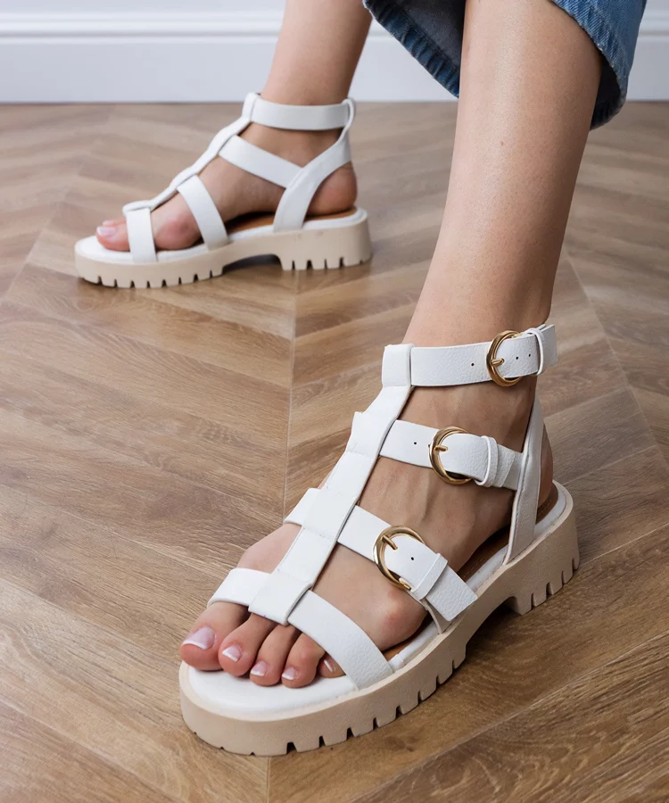 • Białe sandały gladiatorki ze sprzączką Dunara