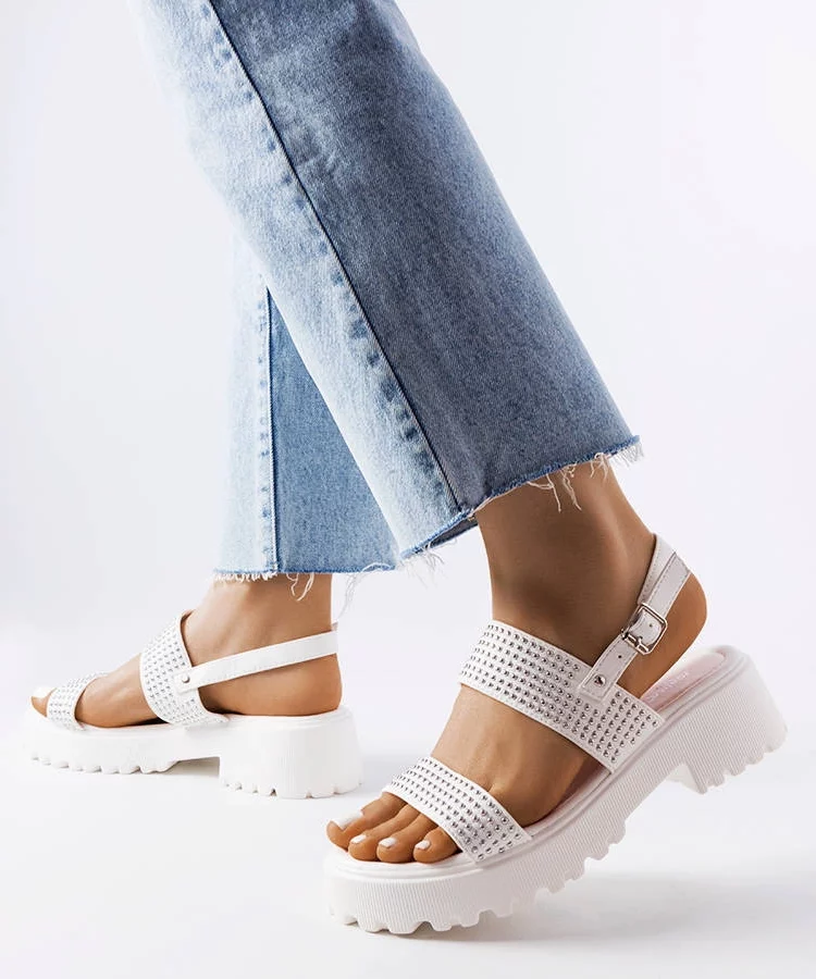 • Białe sandały z ekoskóry na platformie Trensi