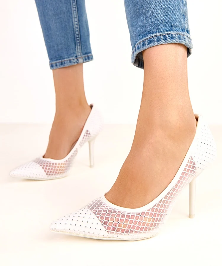 • Białe siateczkowe szpilki zdobione cyrkoniami Rita