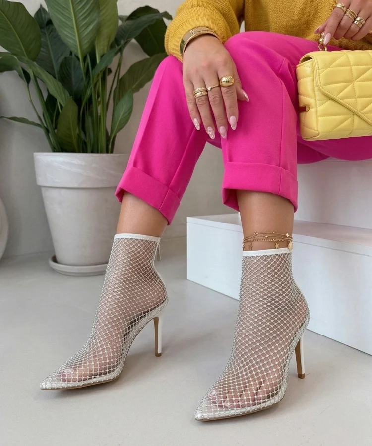 Białe Siateczkowe Botki Na Szpilce Z Cyrkoniami Harper
