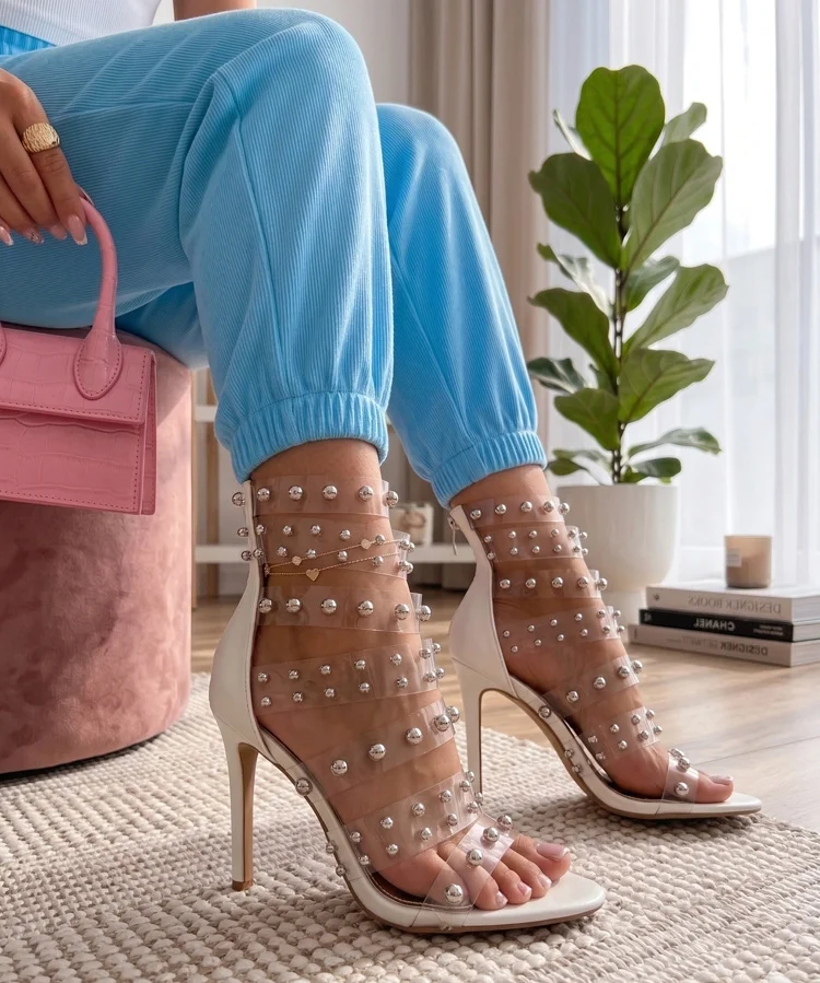Białe Sandały Na Szpilce z Dżetami Maya