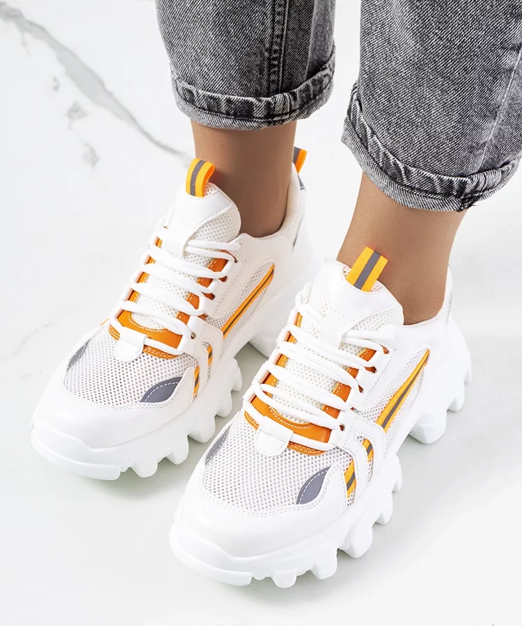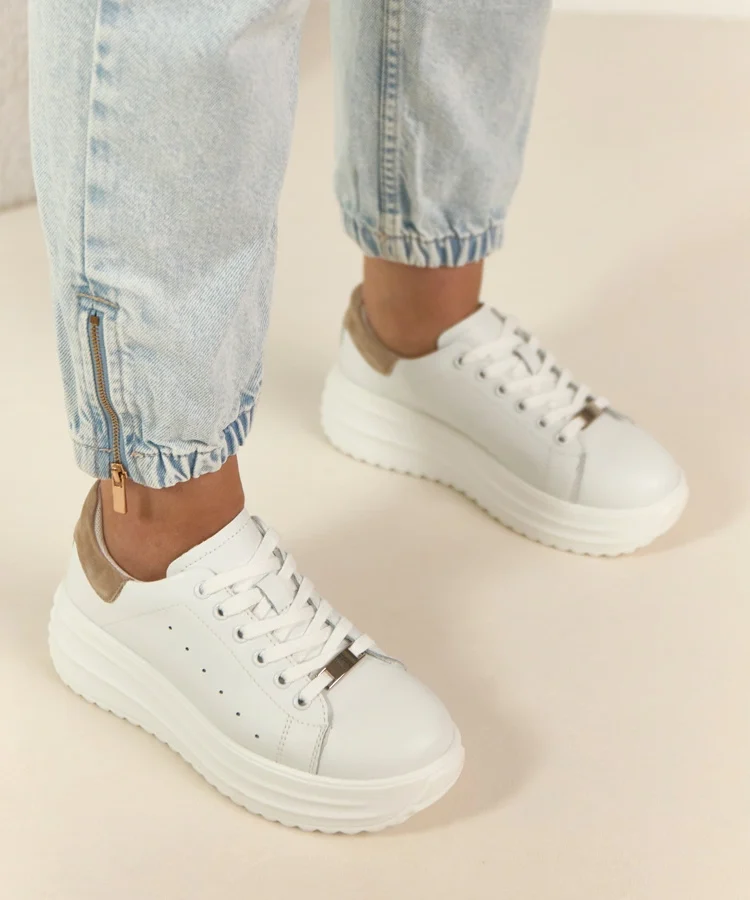 • Białe Skórzane Sneakersy Na Platformie Cambell