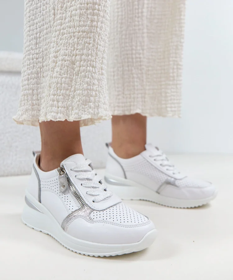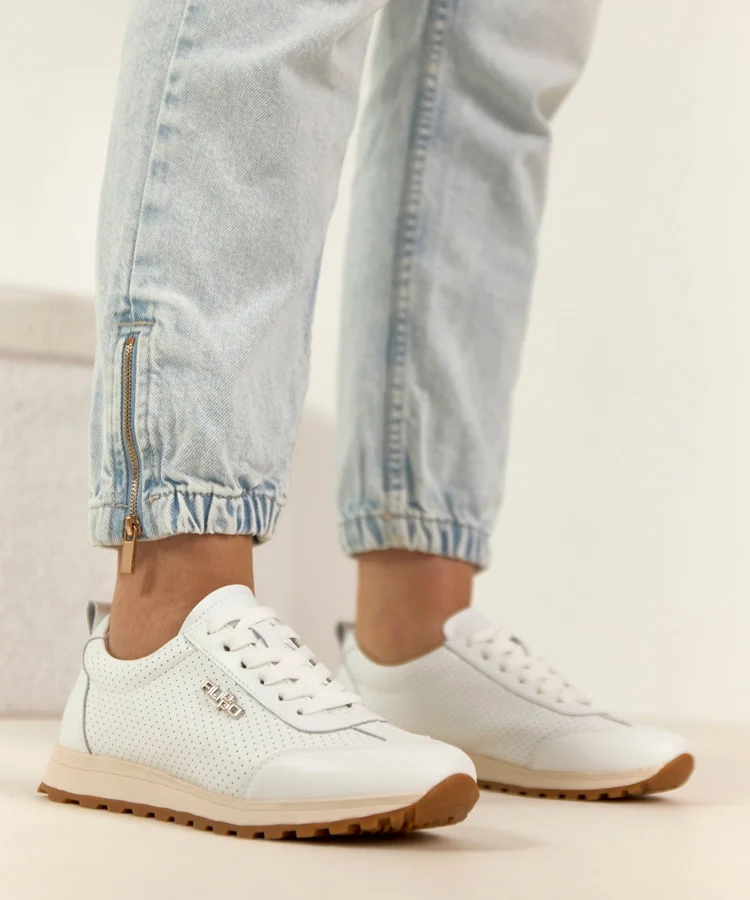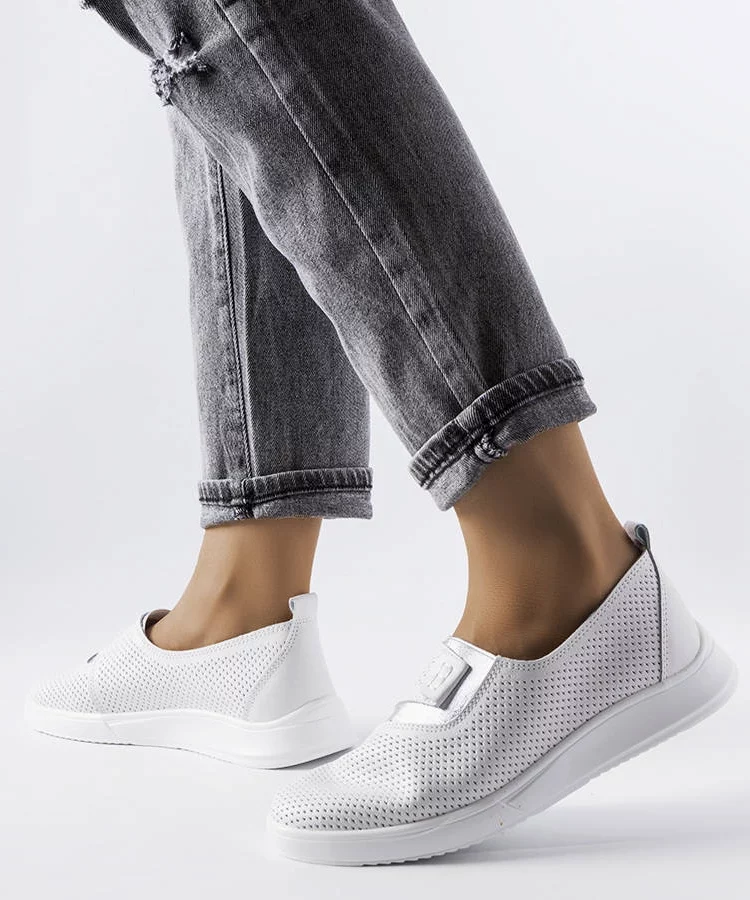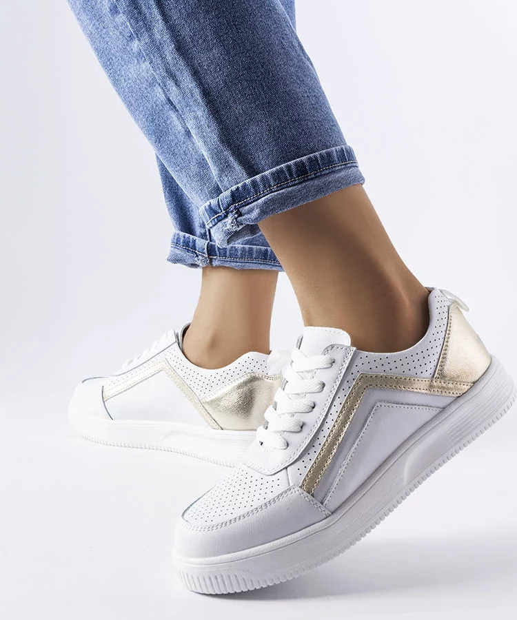 • Białe Skórzane Perforowane Sneakersy Filippo