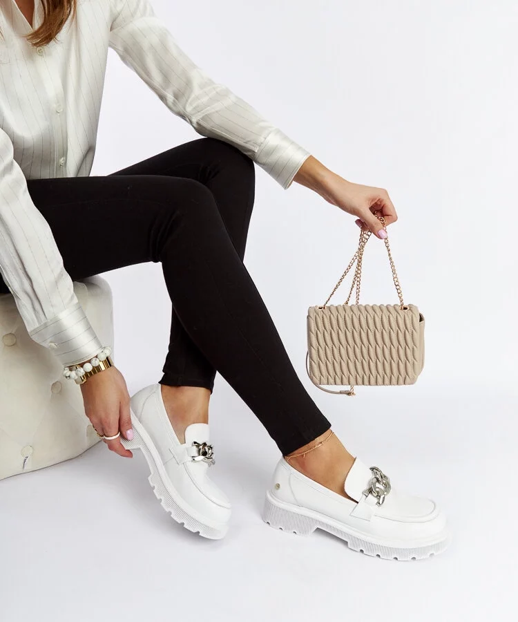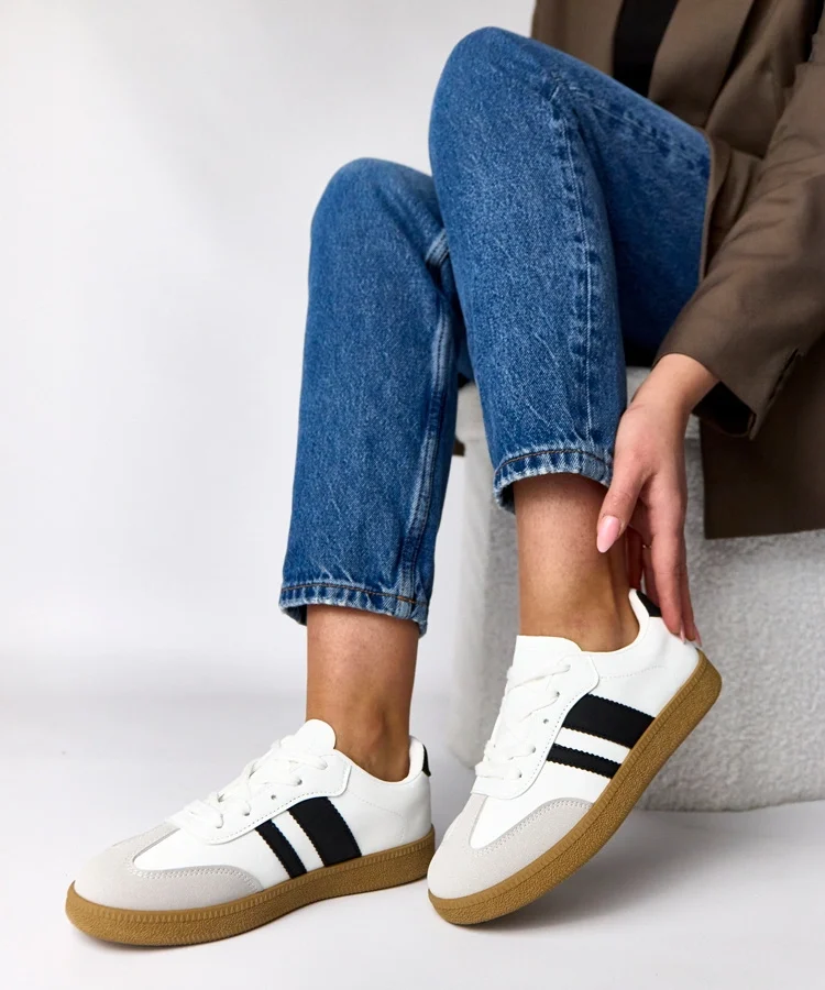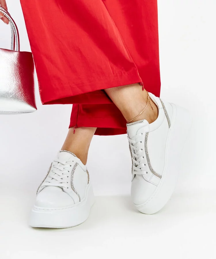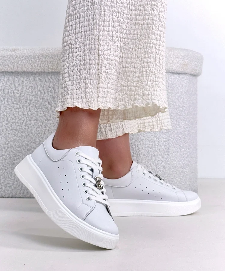 • Białe skórzane sneakersy z cyrkoniami Karino