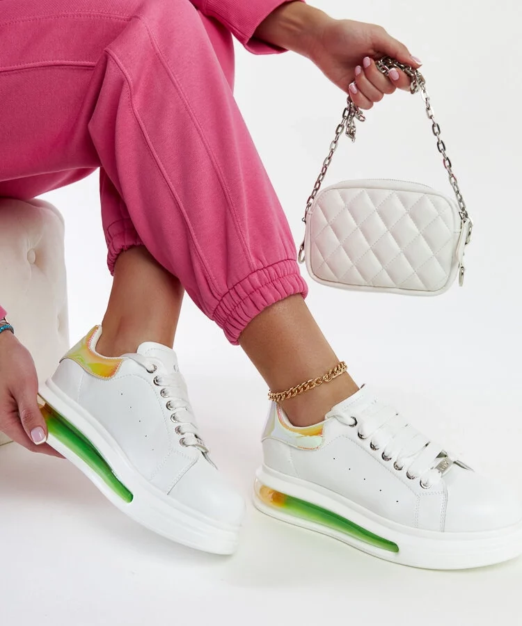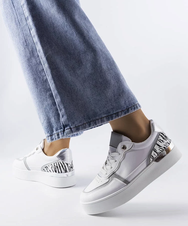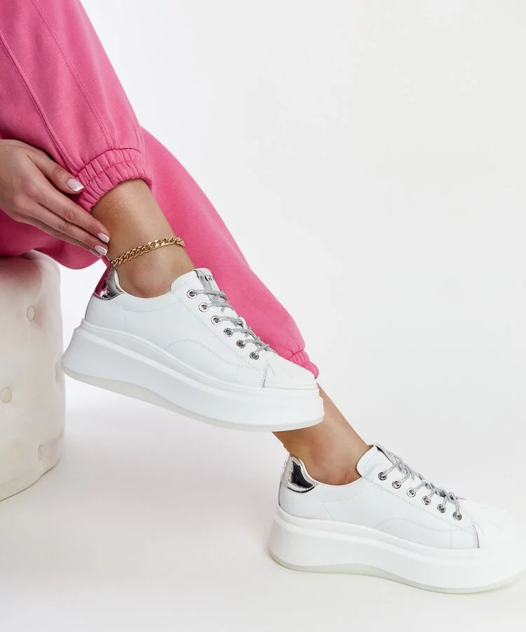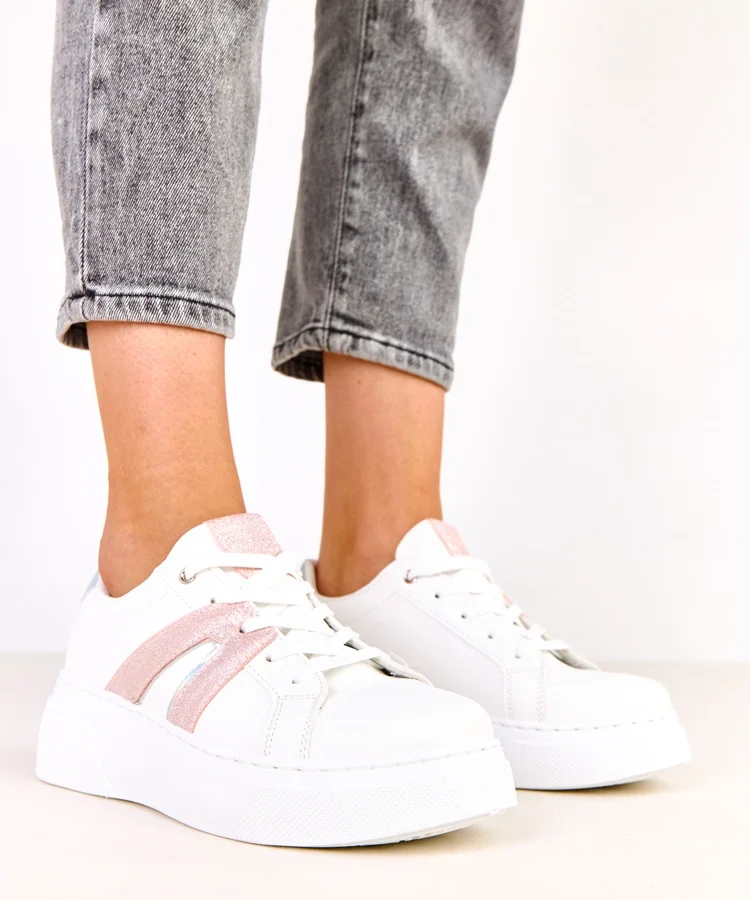 • Białe sneakersy na platformie z brokatowym akcentem Jeromi