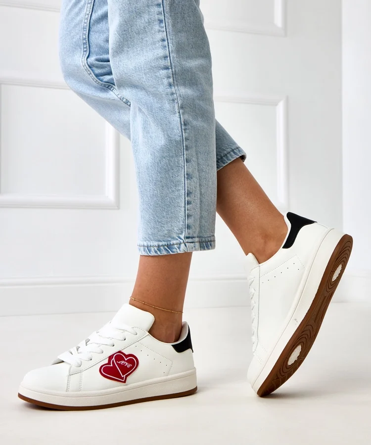 • Białe sneakersy na platformie z czerwonymi serduszkami Tela