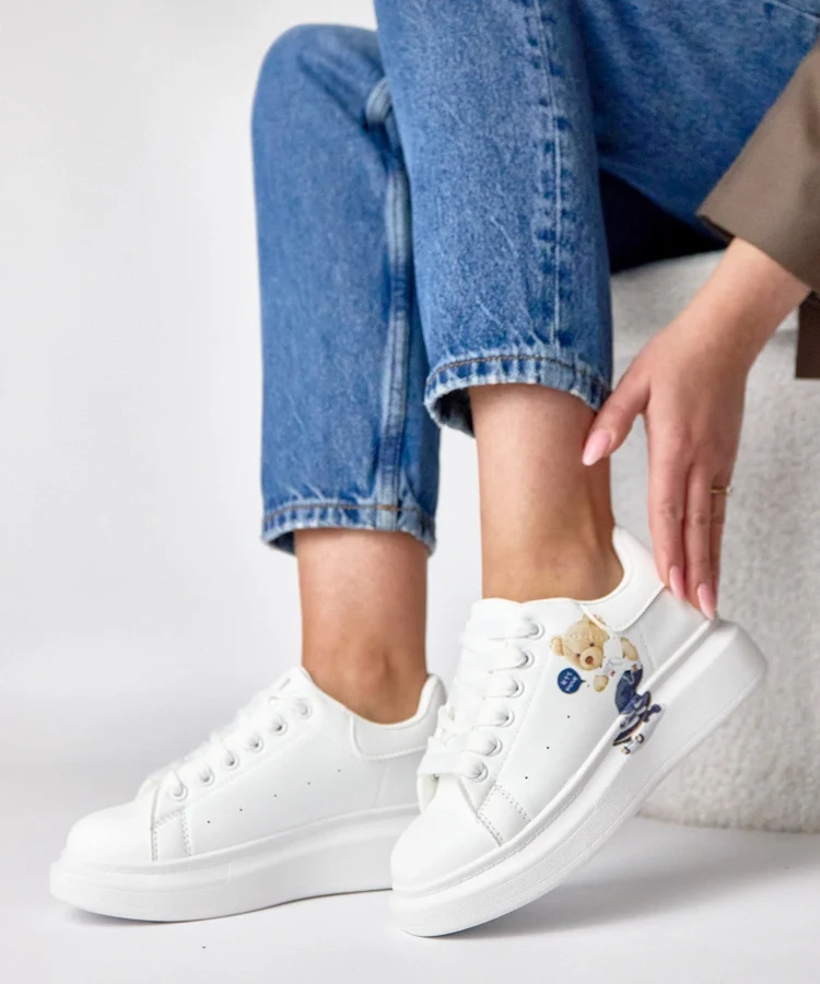 • Białe sneakersy na platformie z misiem Margot