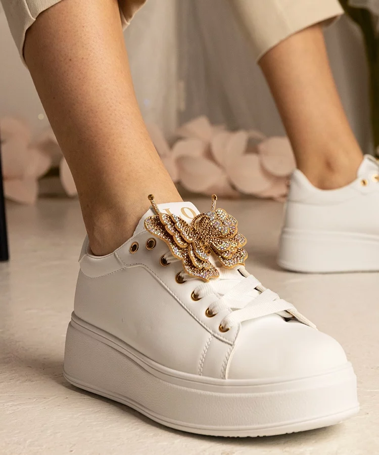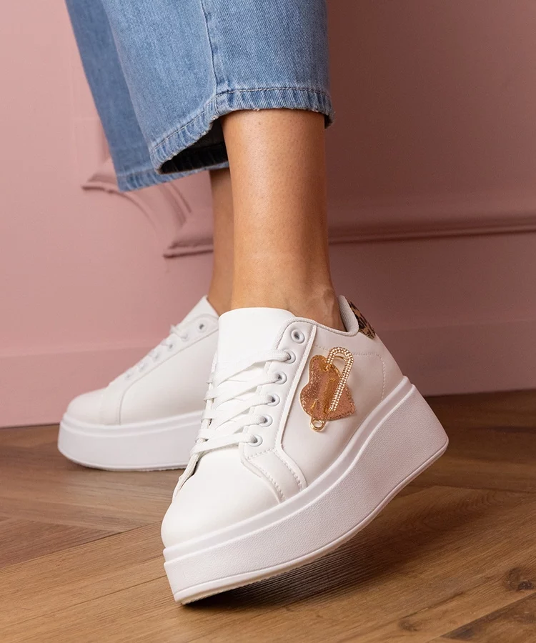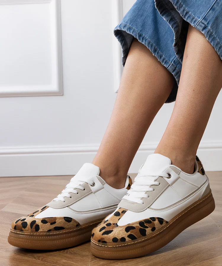 Białe sneakersy z panterkowym dodatkiem Lerisol