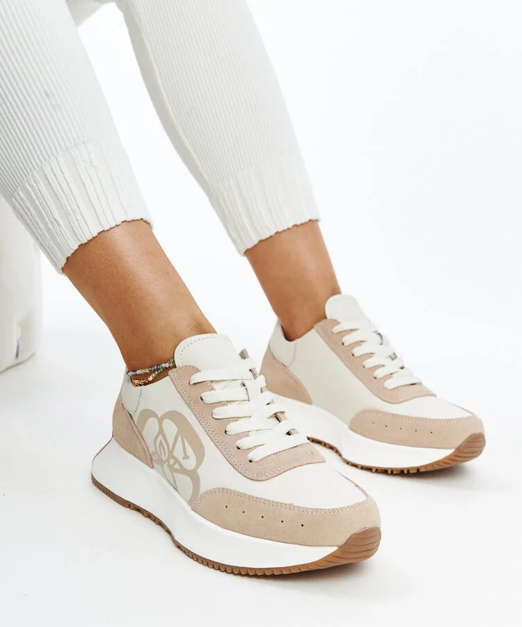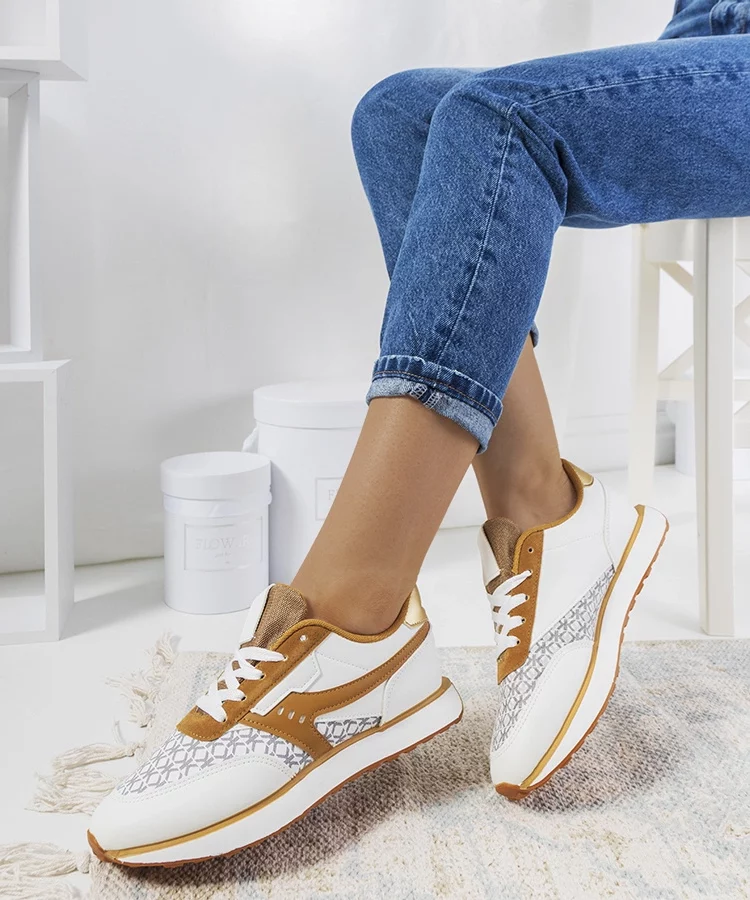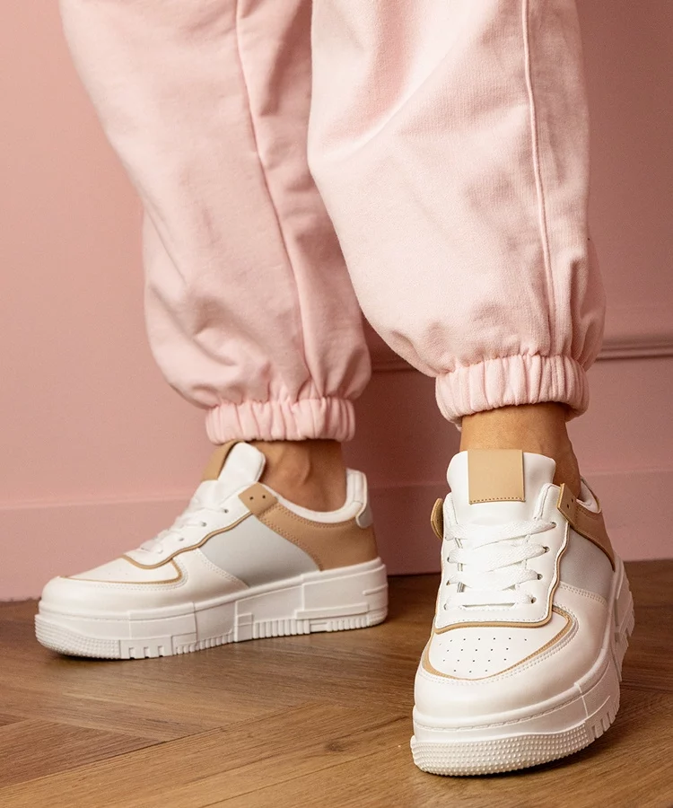 • Biało-beżowe sneakersy sportowe na platfotmie Fiones