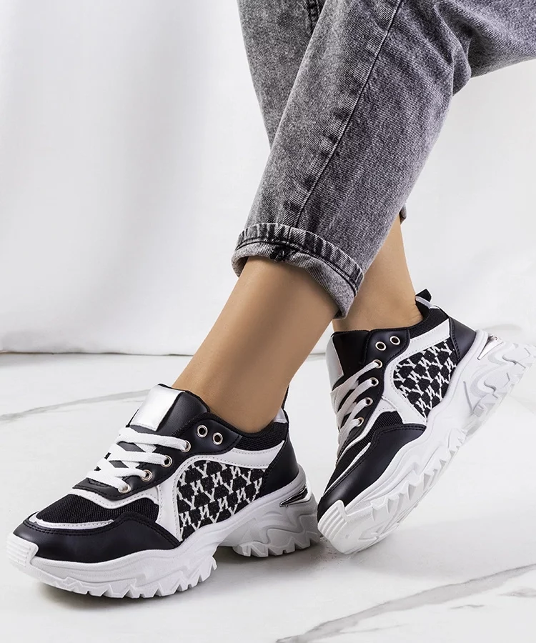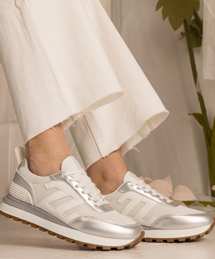 • Białe-srebrne sneakersy damskie sportowe Marena