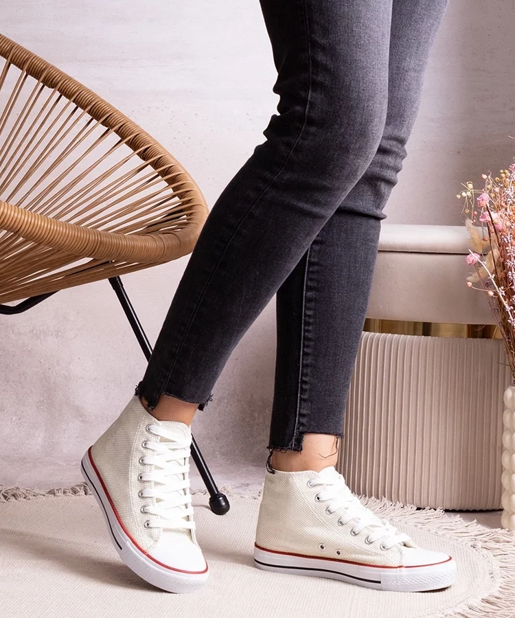 Białe wysokie trampki z siateczki błyszczącej Ranifali