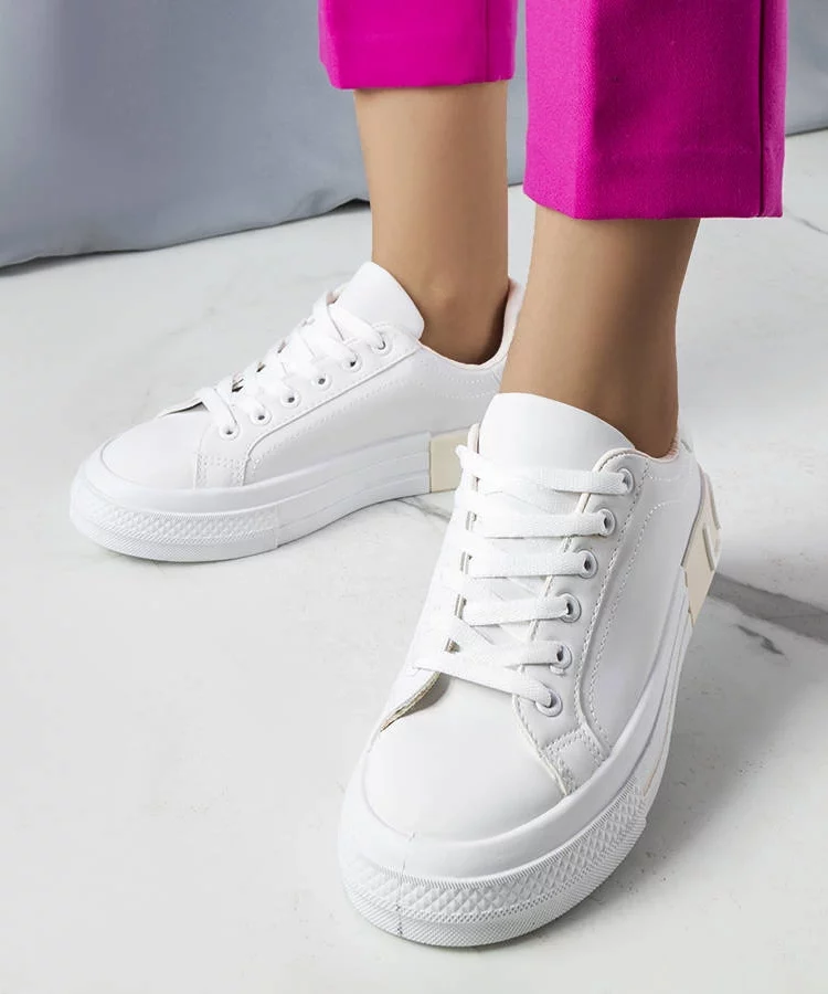 • Biało-beżowe sneakersy zdobione brokatem i gwiazdką Taleda