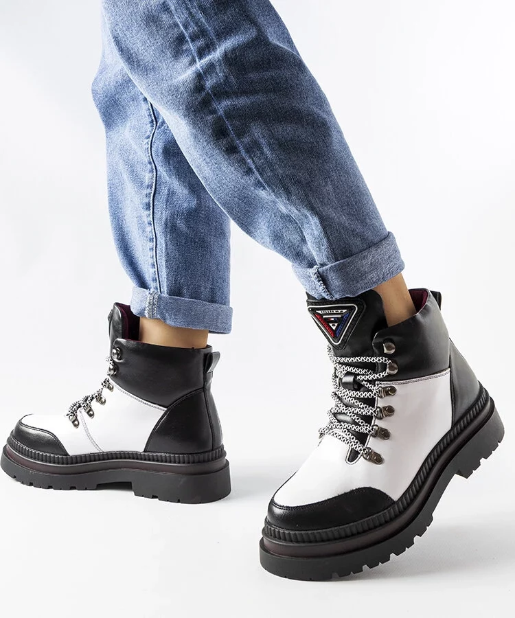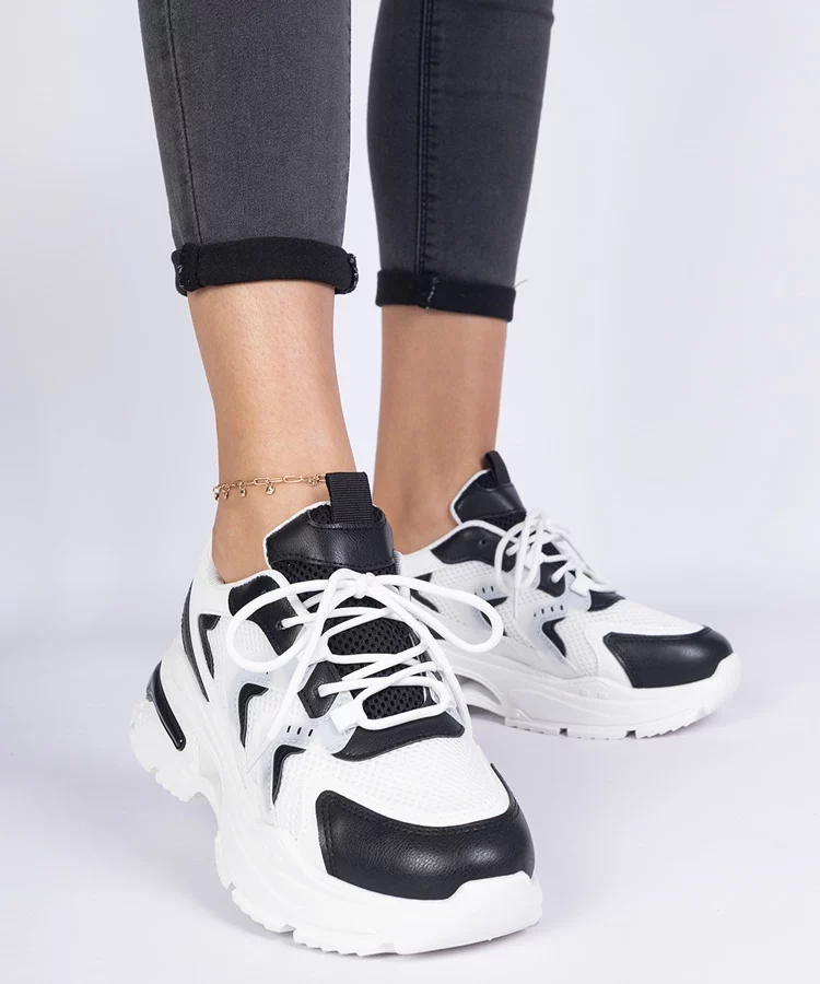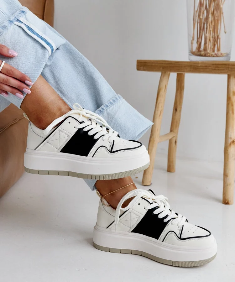 • Biało-czarne skórzane sneakersy na grubej podeszwie Abrar
