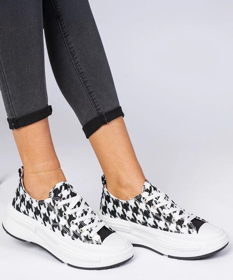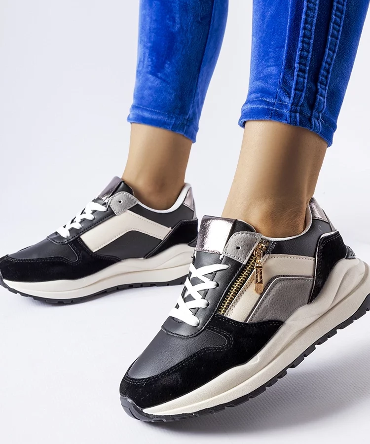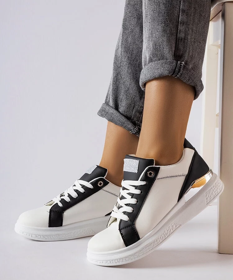 Biało-czarne sneakersy damskie z brokatem Elizar