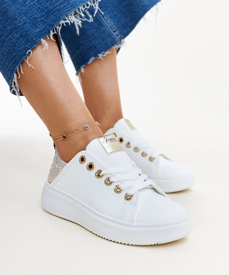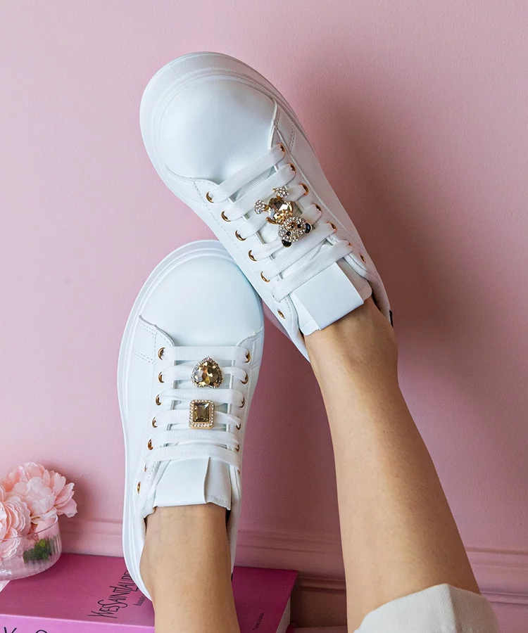 Biało-beżowe sneakersy z cyrkoniami Antonietta