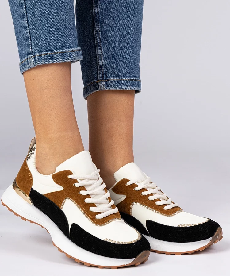 • Biało-brązowe sneakersy za kostkę Elizabeth