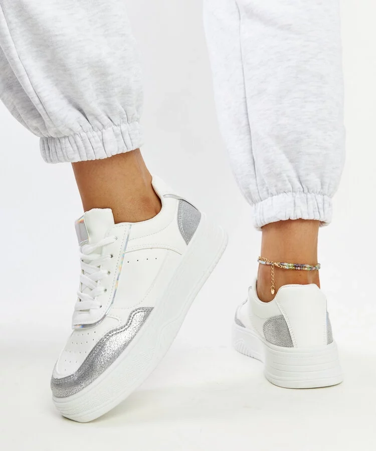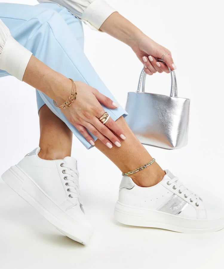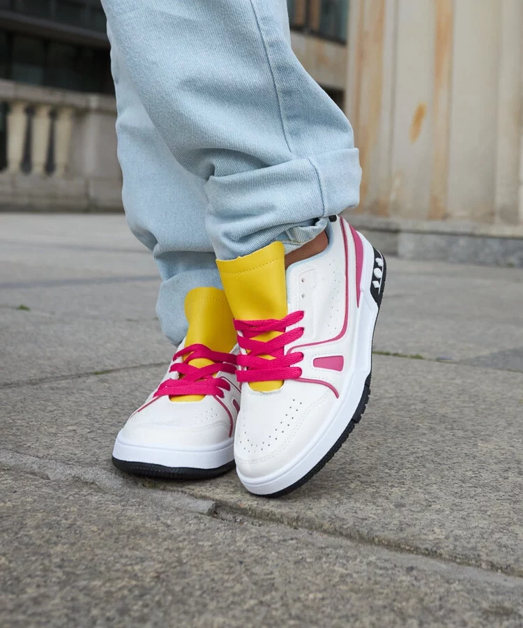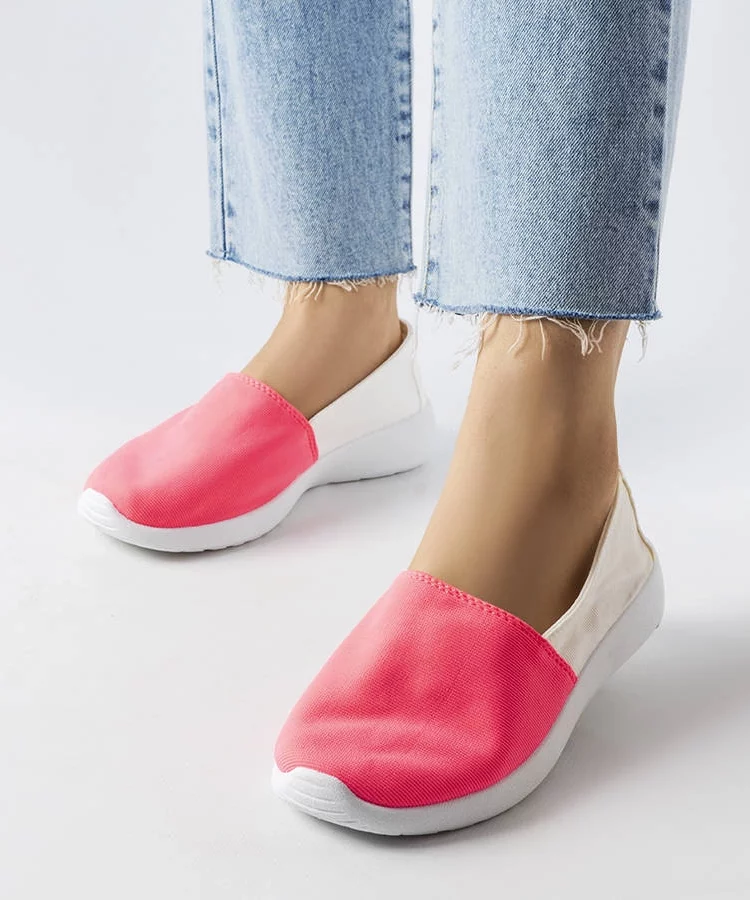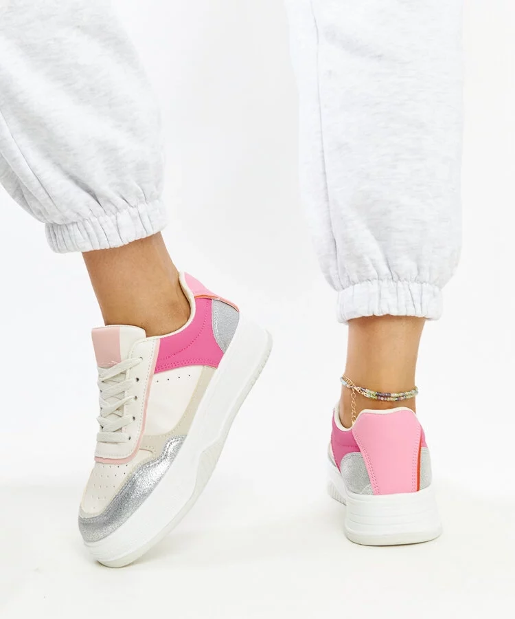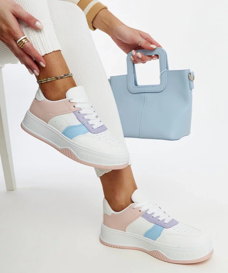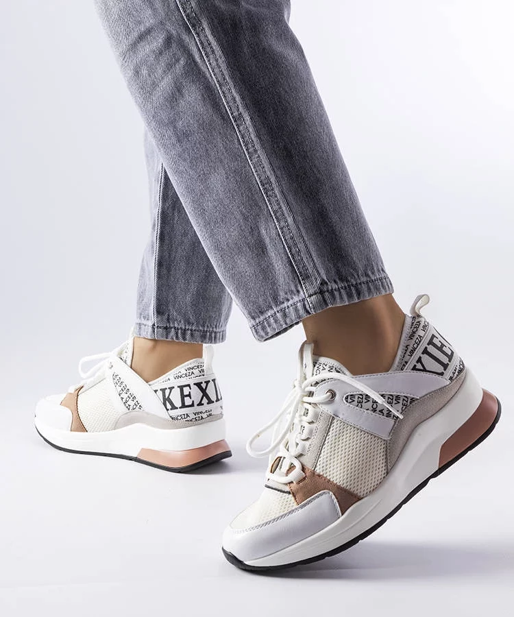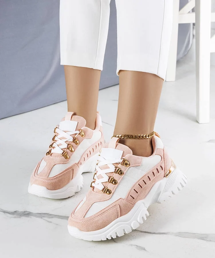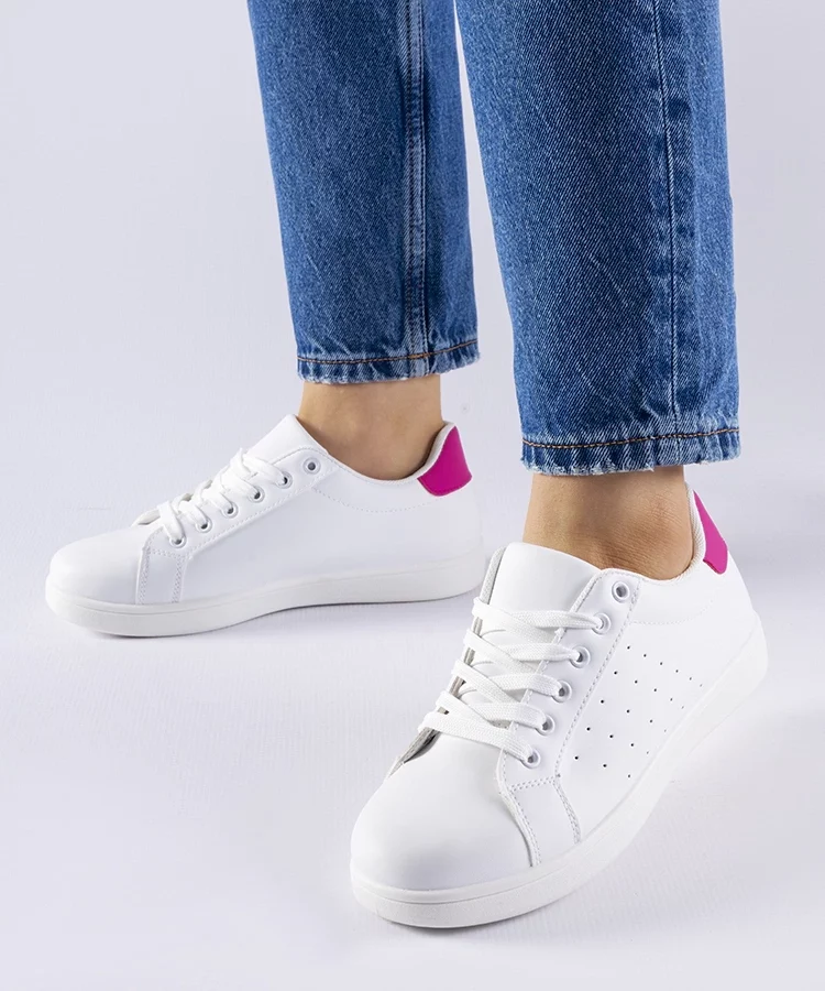 Biało-różowe sportowe sneakersy z ekoskóry Lavilia