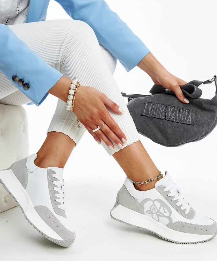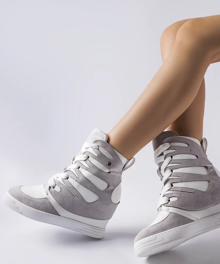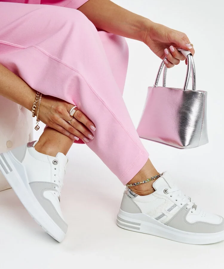 • Biało-szare sneakersy na koturnie Pantaleone
