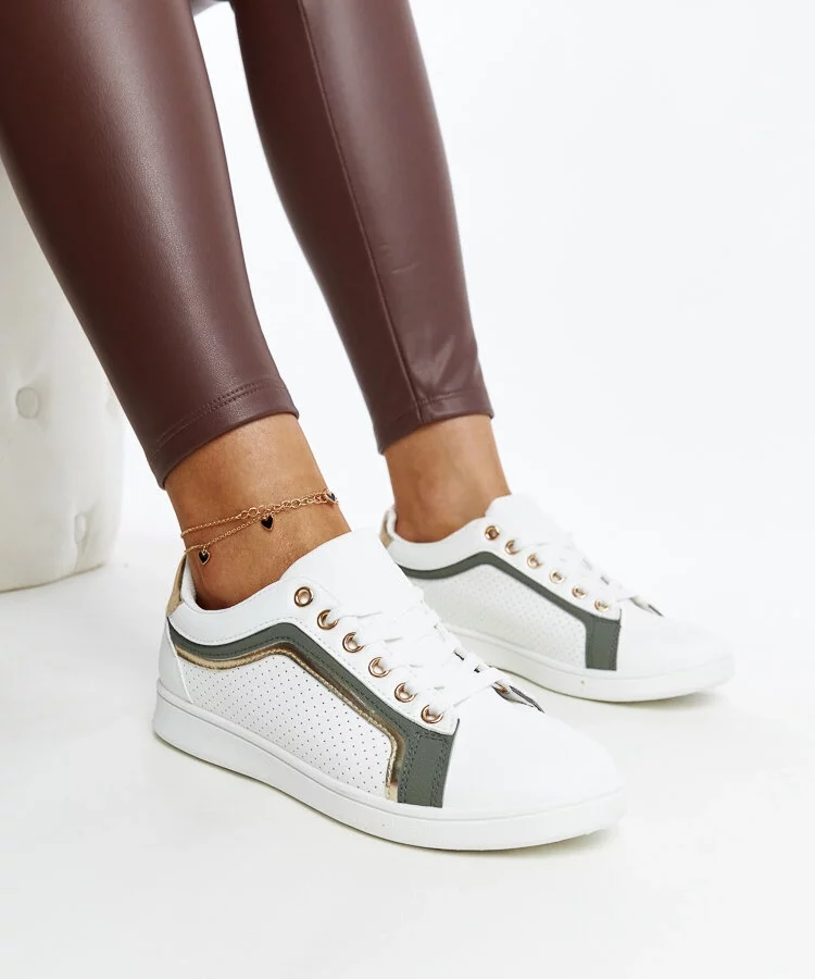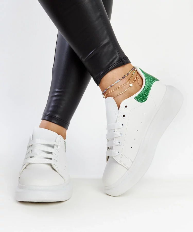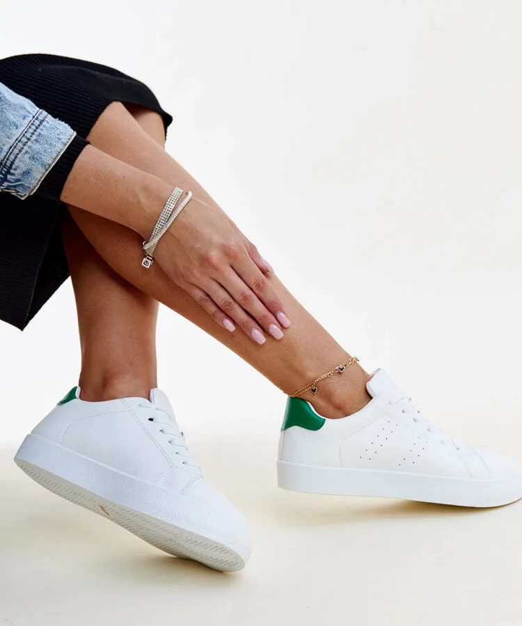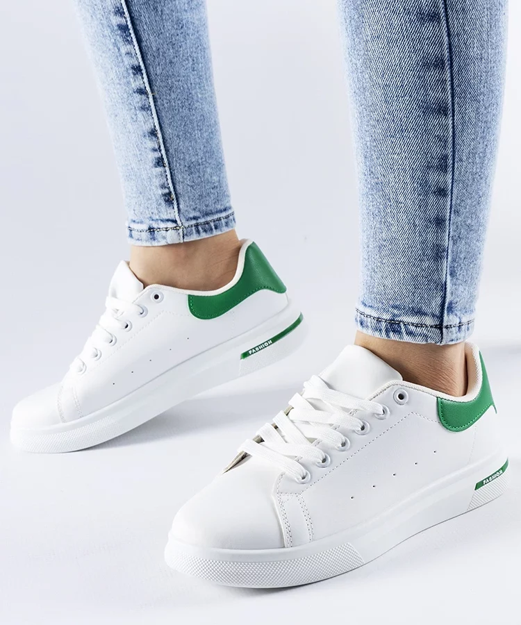 Biało-zielone sneakersy eko-skórzane Fatimah