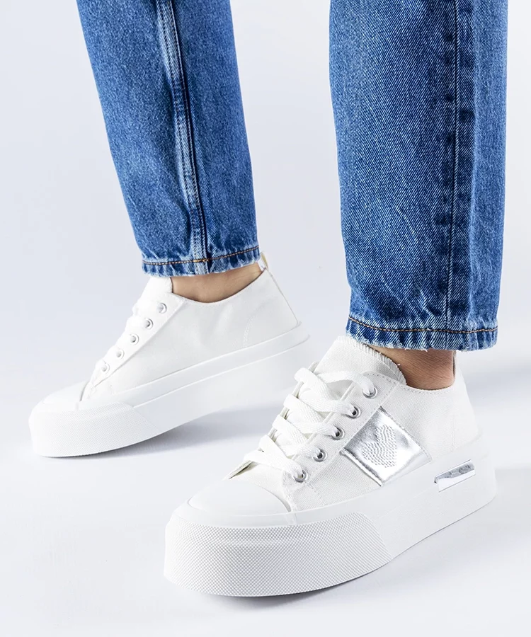 Biało-srebrne trampki na platformie Lawton
