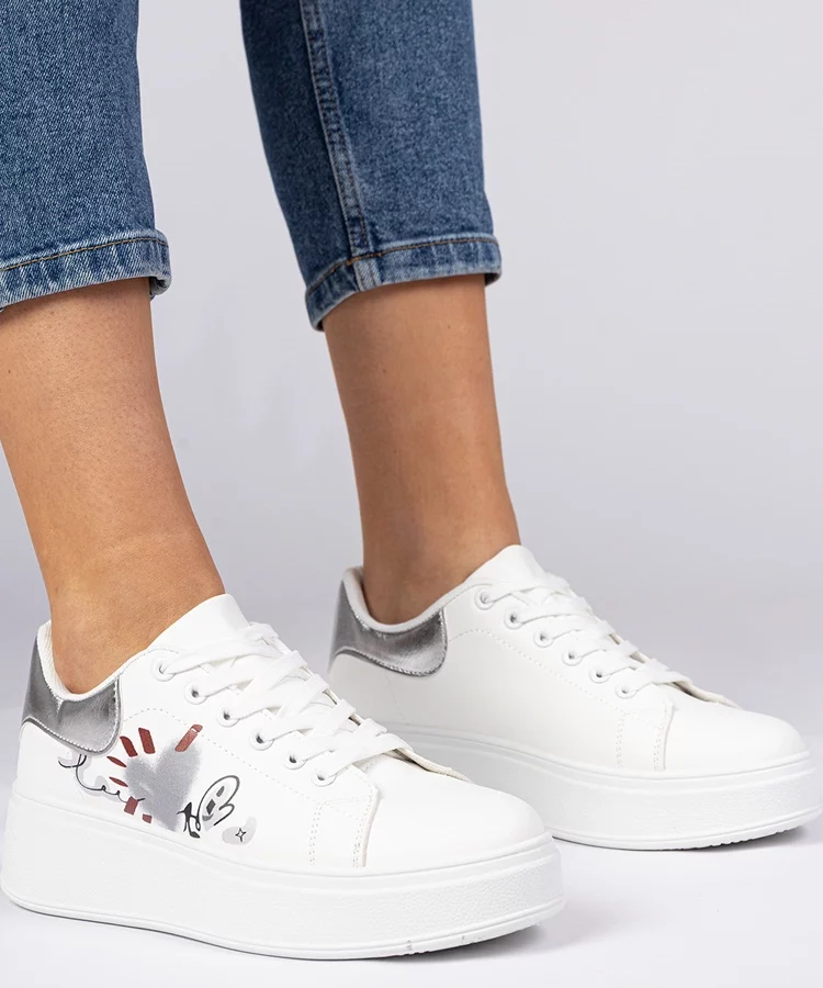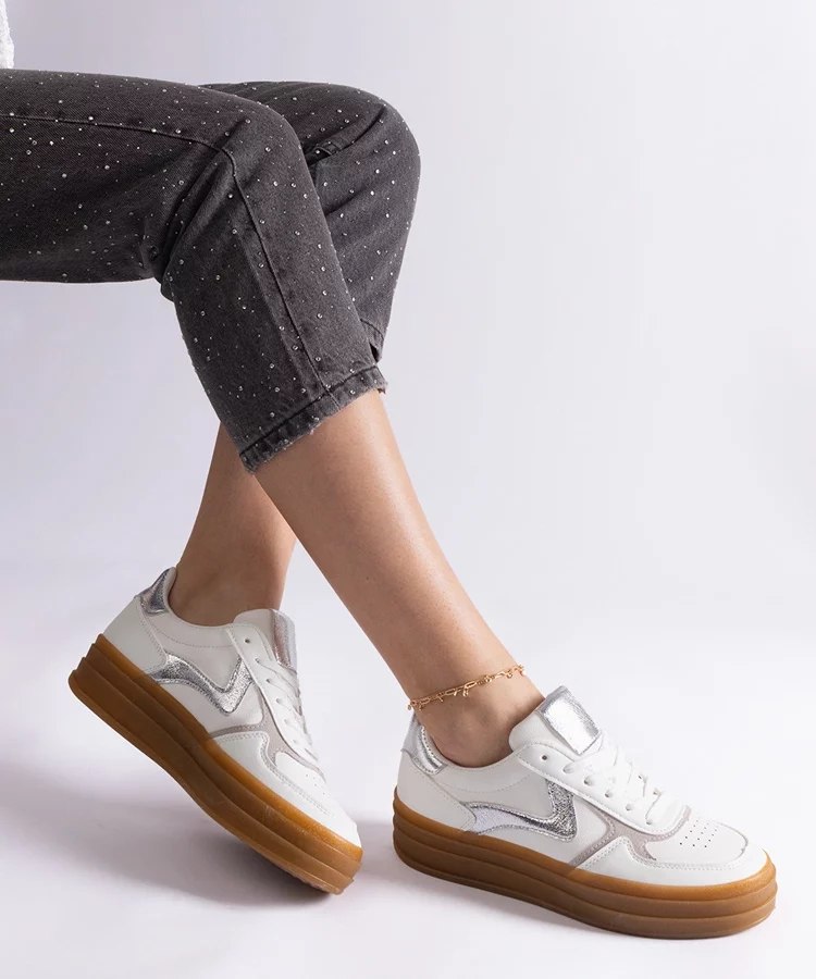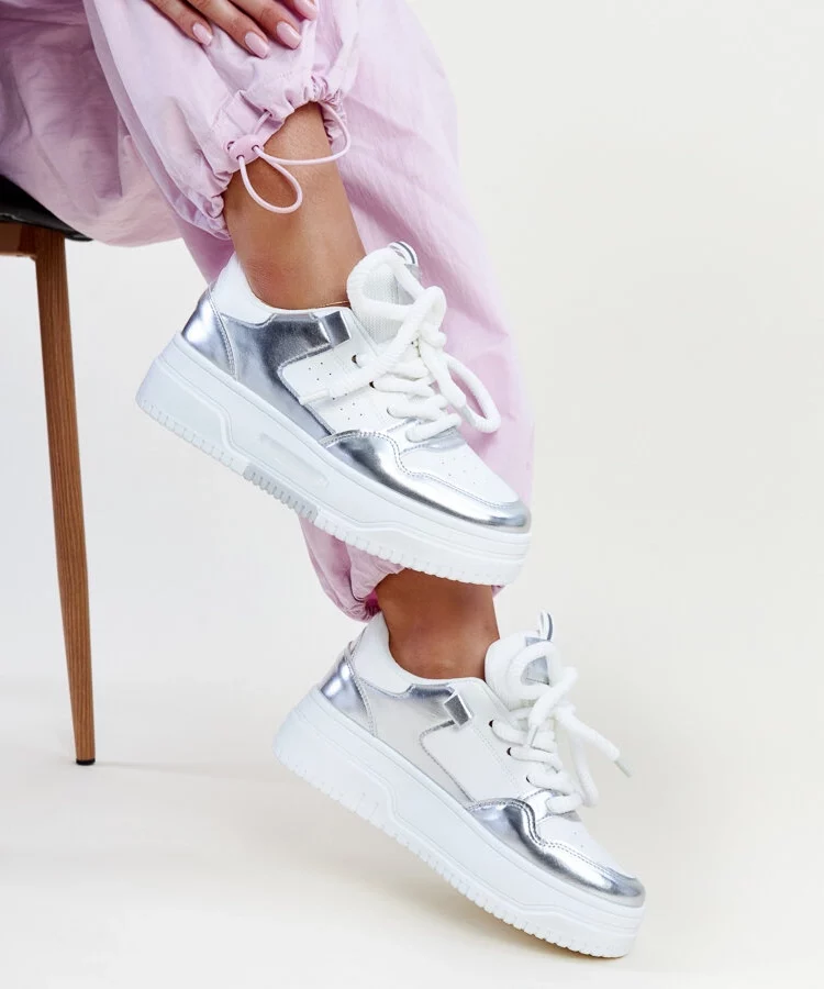 • Biało-srebrne trampki na platformie Lawton