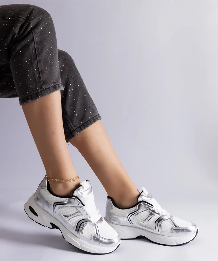 • Biało-srebrne sneakersy sportowe Ena