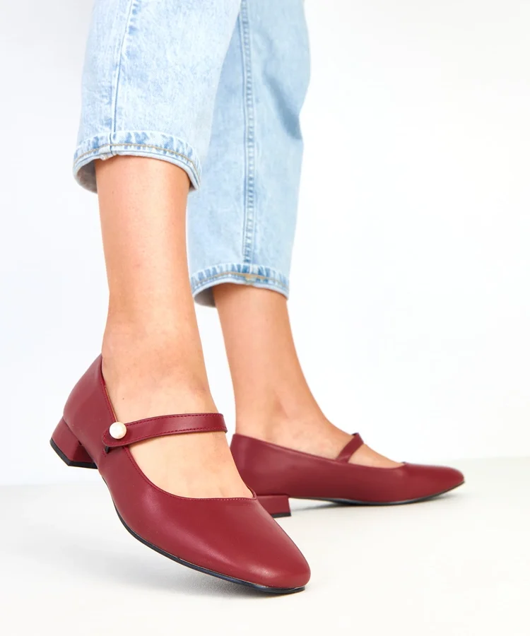 Bordowe czółenka na słupku z ozdobnym paskiem Alya
