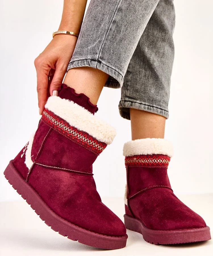 Bordowe niskie śniegowce zdobione haftem Sensila