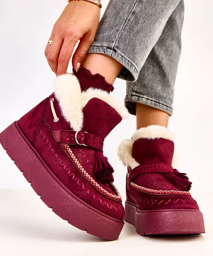 • Bordowe śniegowce na platformie z frędzlami Maurisa