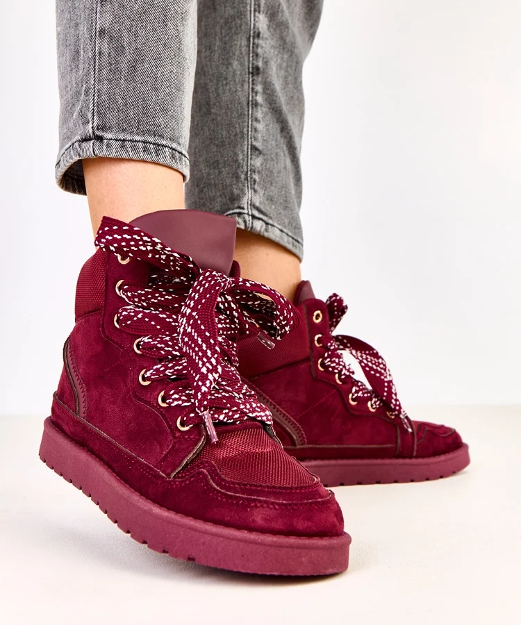 • Bordowe sneakersy wysokie z grubymi sznurówkami Klevis