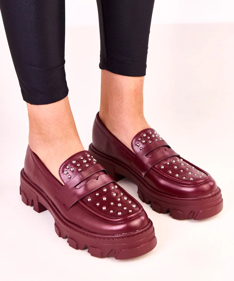 • Bordowe mokasyny damskie zdobione ćwiekami Memolis