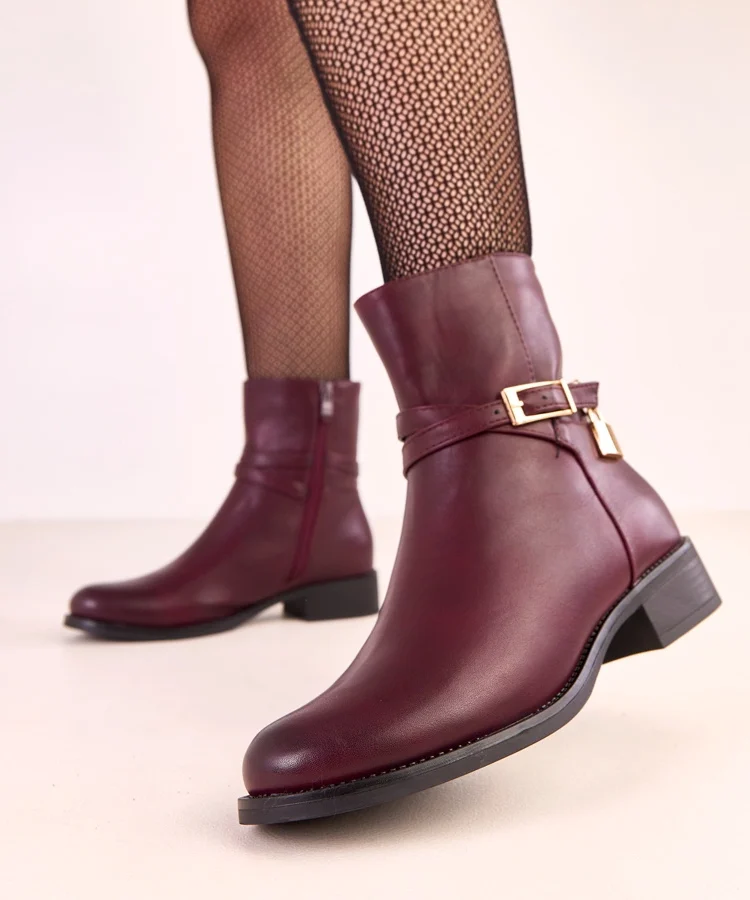 • Bordowe botki z klamrą i kłódką Zema