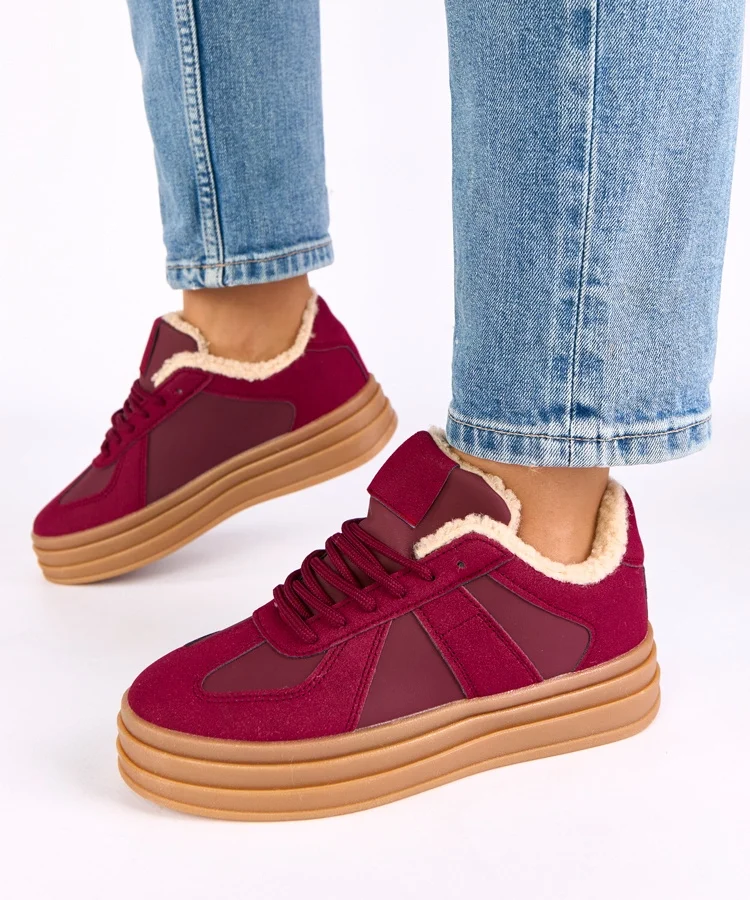 • Bordowe sneakersy ocieplane futerkiem Kelsi