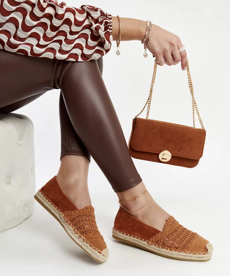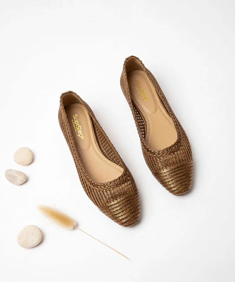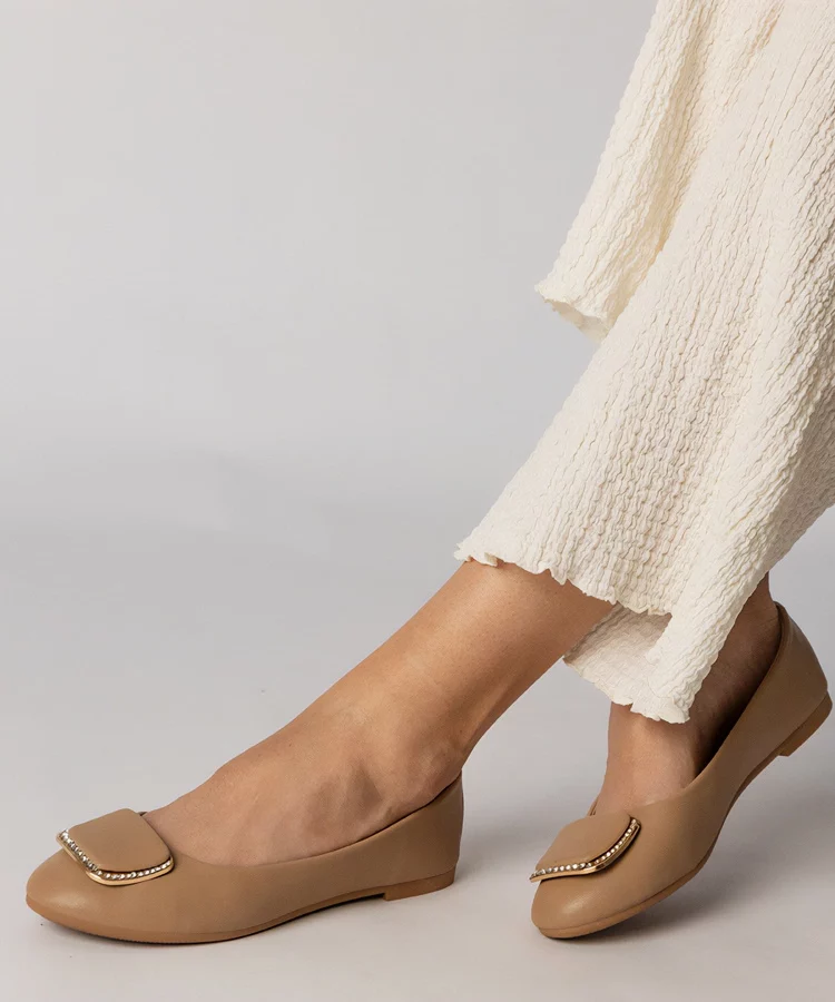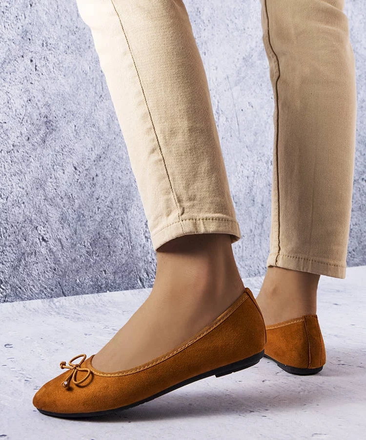 • Brązowe balerinki damskie z cyrkoniami Bejla