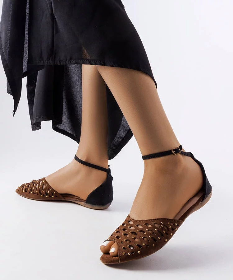 Brązowe ażurowe balerinki na niskim obcasie Simone