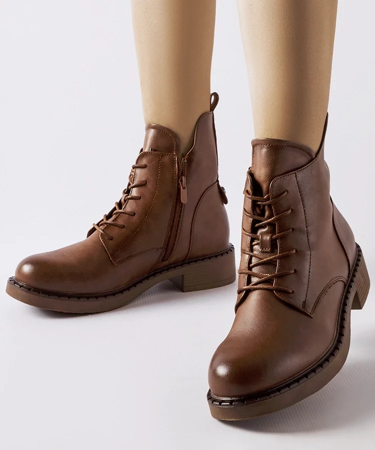 Brązowe Ażurowe Botki Na Słupku Potocki