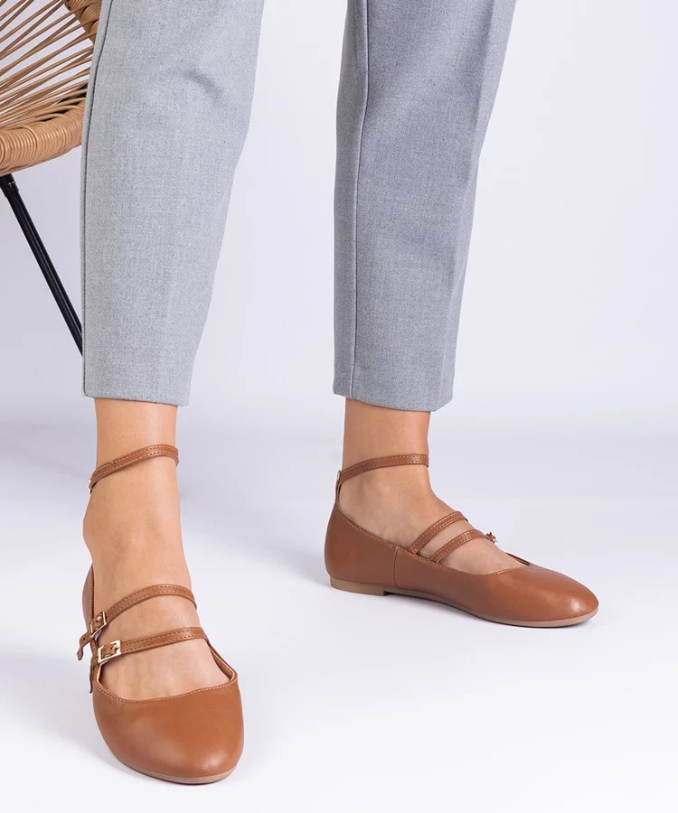 Brązowe balerinki z ekoskóry ze sprzączkami Vitoldora