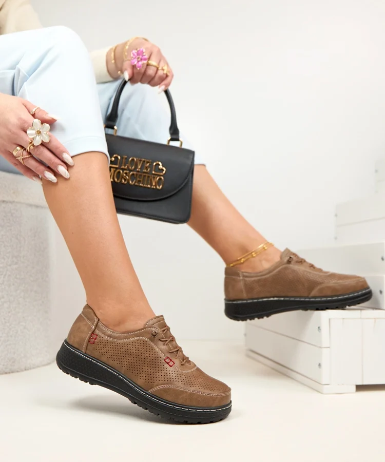 • Brązowe Ażurowe Wsuwane Sneakersy SIone