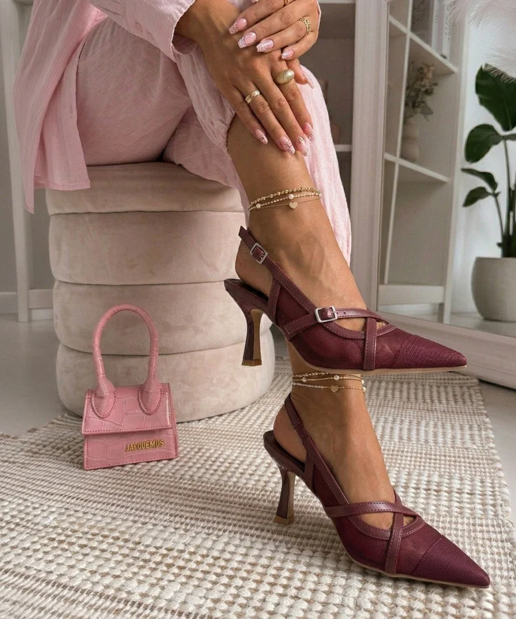 Bordowe Szpilki Z Odkrytą Piętą Philippa