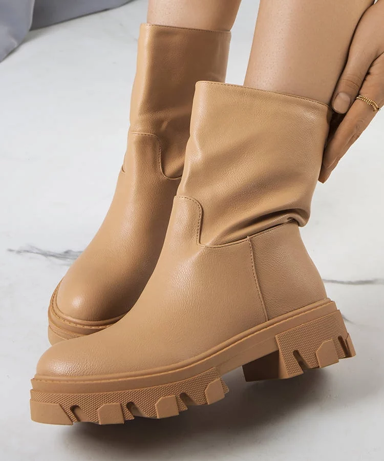 • Brązowe botki ocieplane z marszczoną cholewką Lovisa
