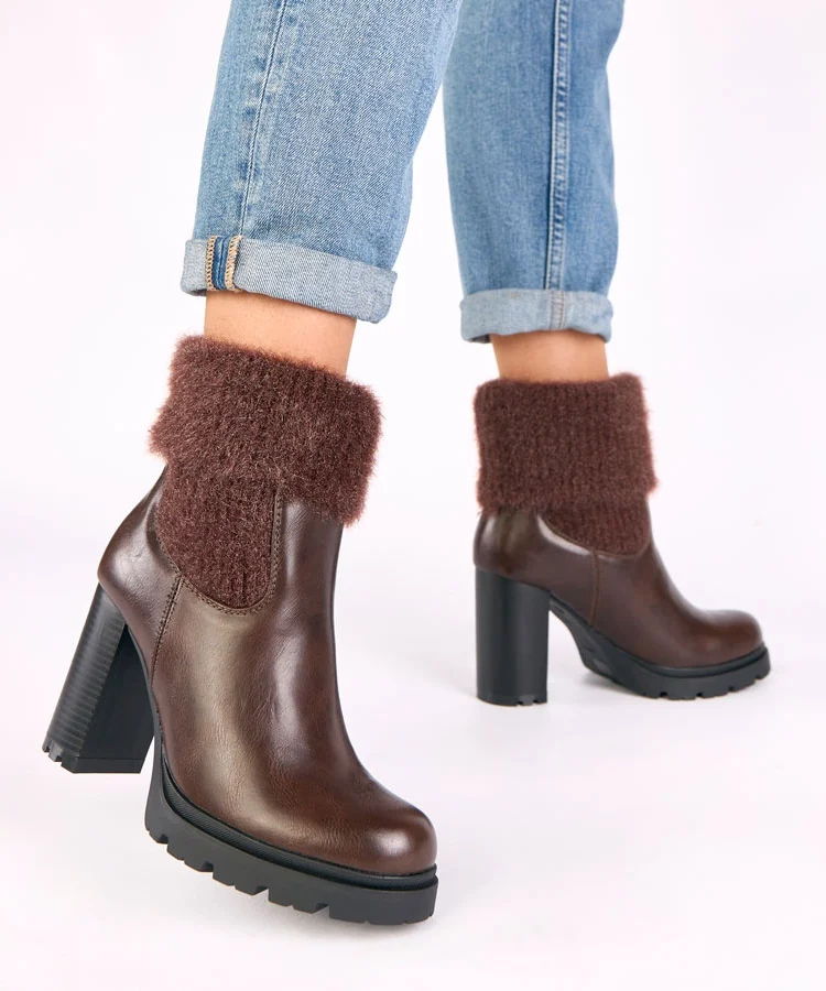 • Brązowe botki na słupku z wywiniętą cholewką Felicia