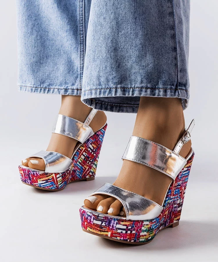 • Srebrne sandały na koturnie z plecionym paskiem Ameliz