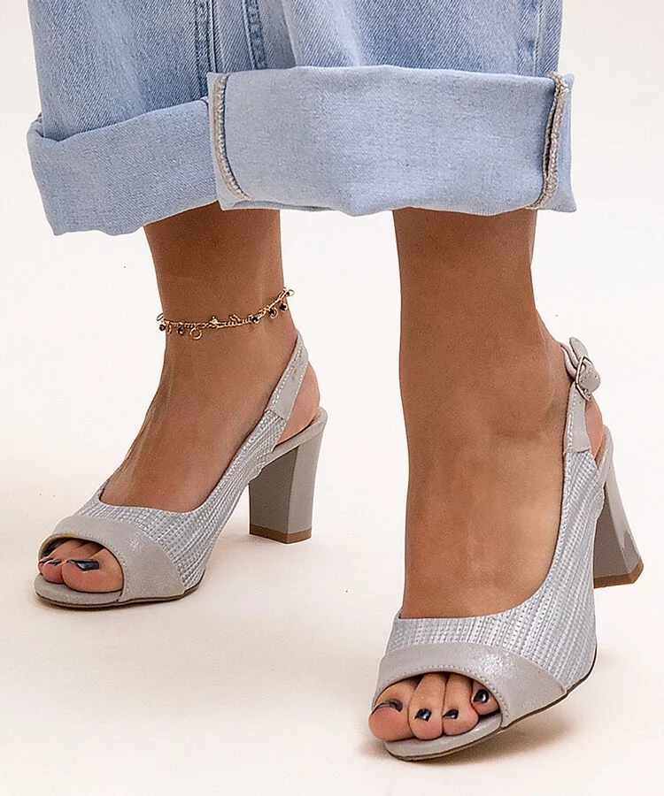 • Srebrne sandały na słupku ze skórzana wkładką Tida