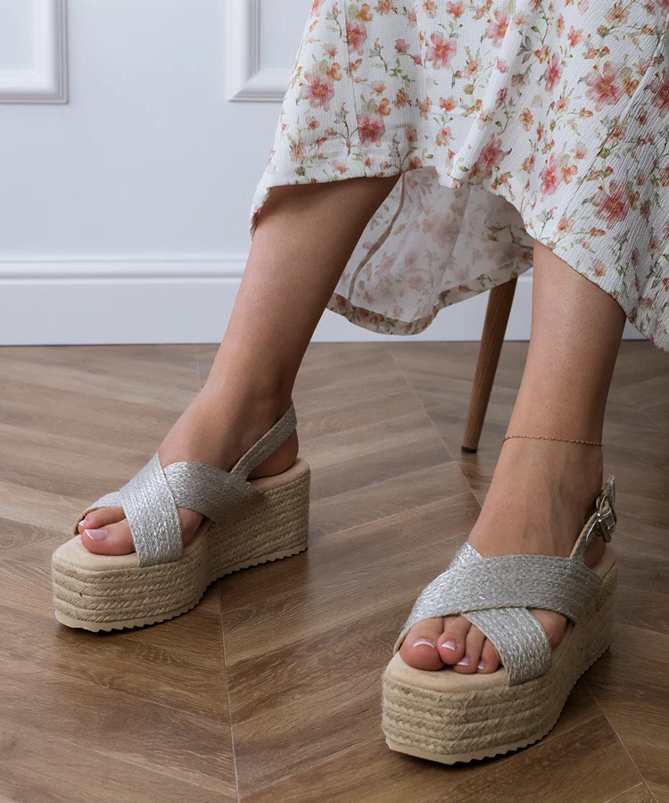 Srebrne sandały espadryle na platformie z paskami Olisa