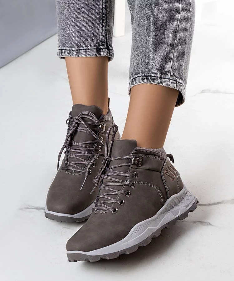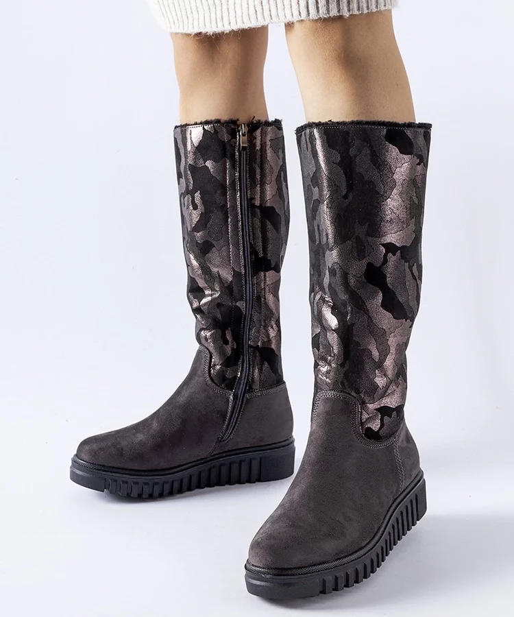 • Szare ocieplane kozaki moro eko-zamsz Piazzola