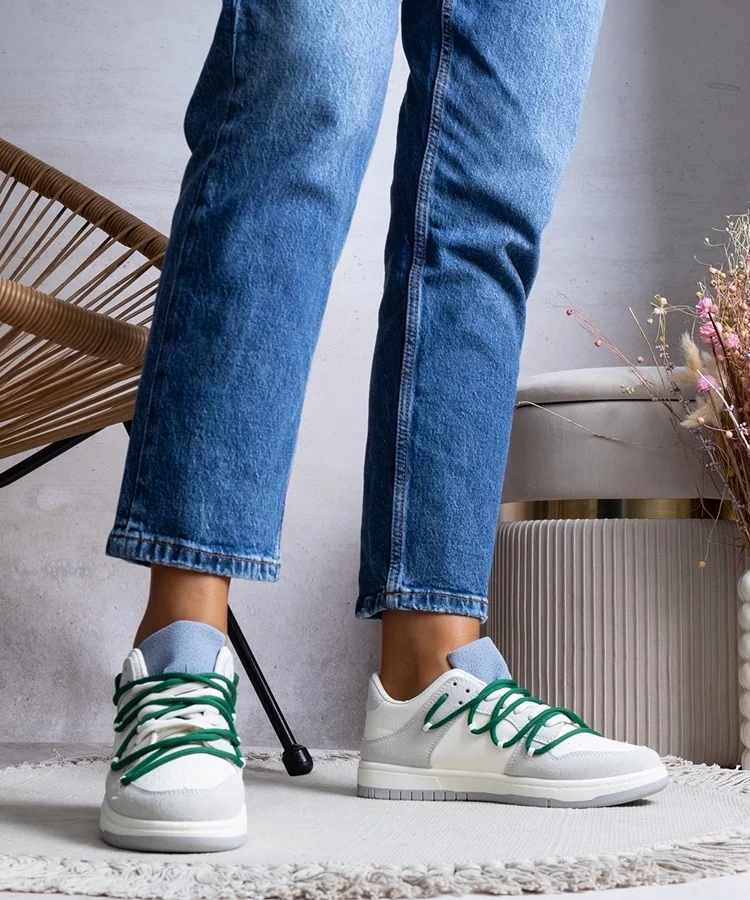 Szare sneakersy trampki z zielonymi sznurówkami Arcobaleno