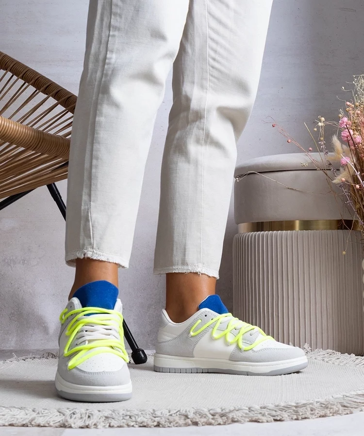 Szare sneakersy trampki z neonowymi sznurówkami Arcobaleno